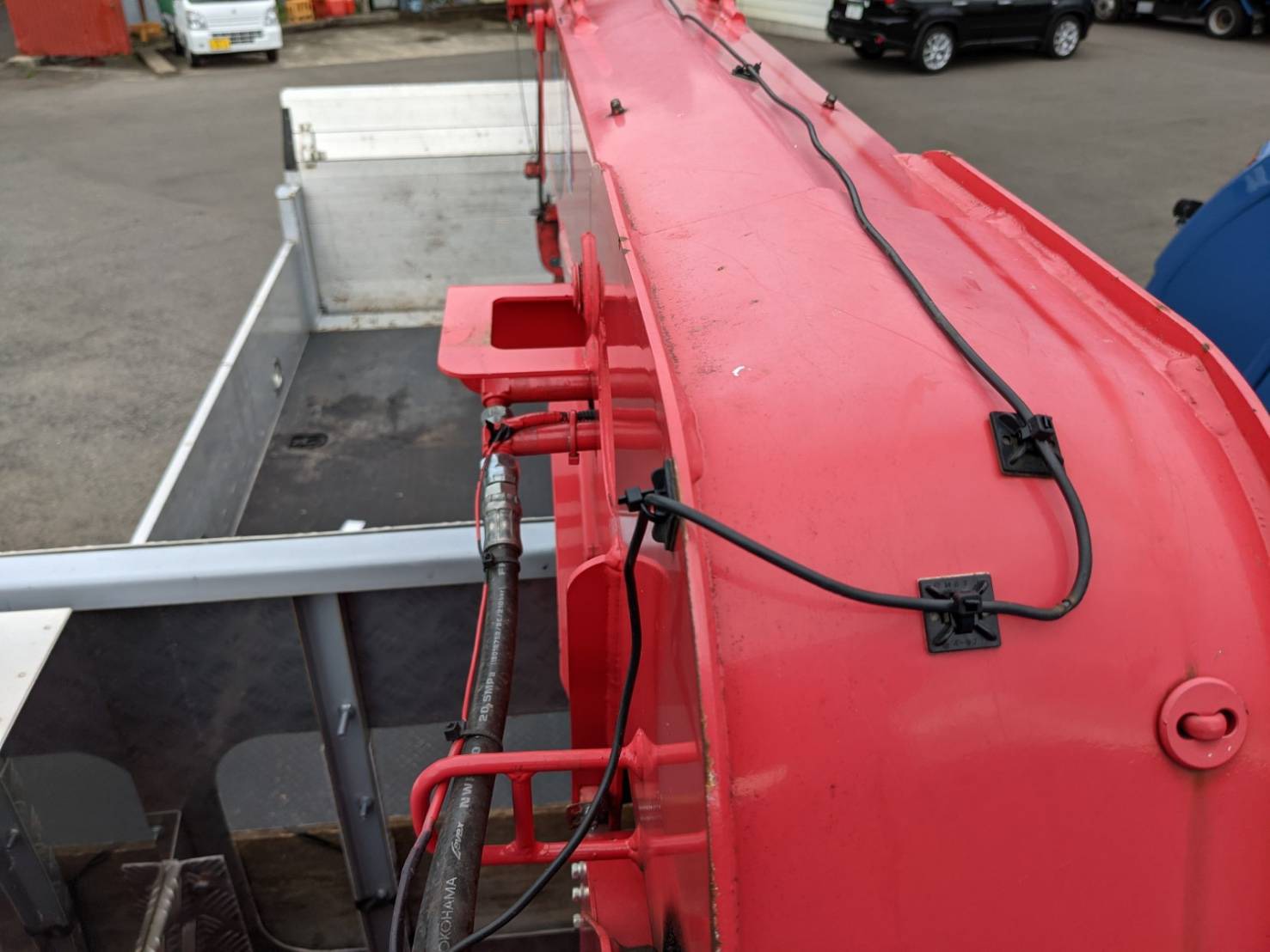 ブーム上部に作業灯用の電源線が配線されています。