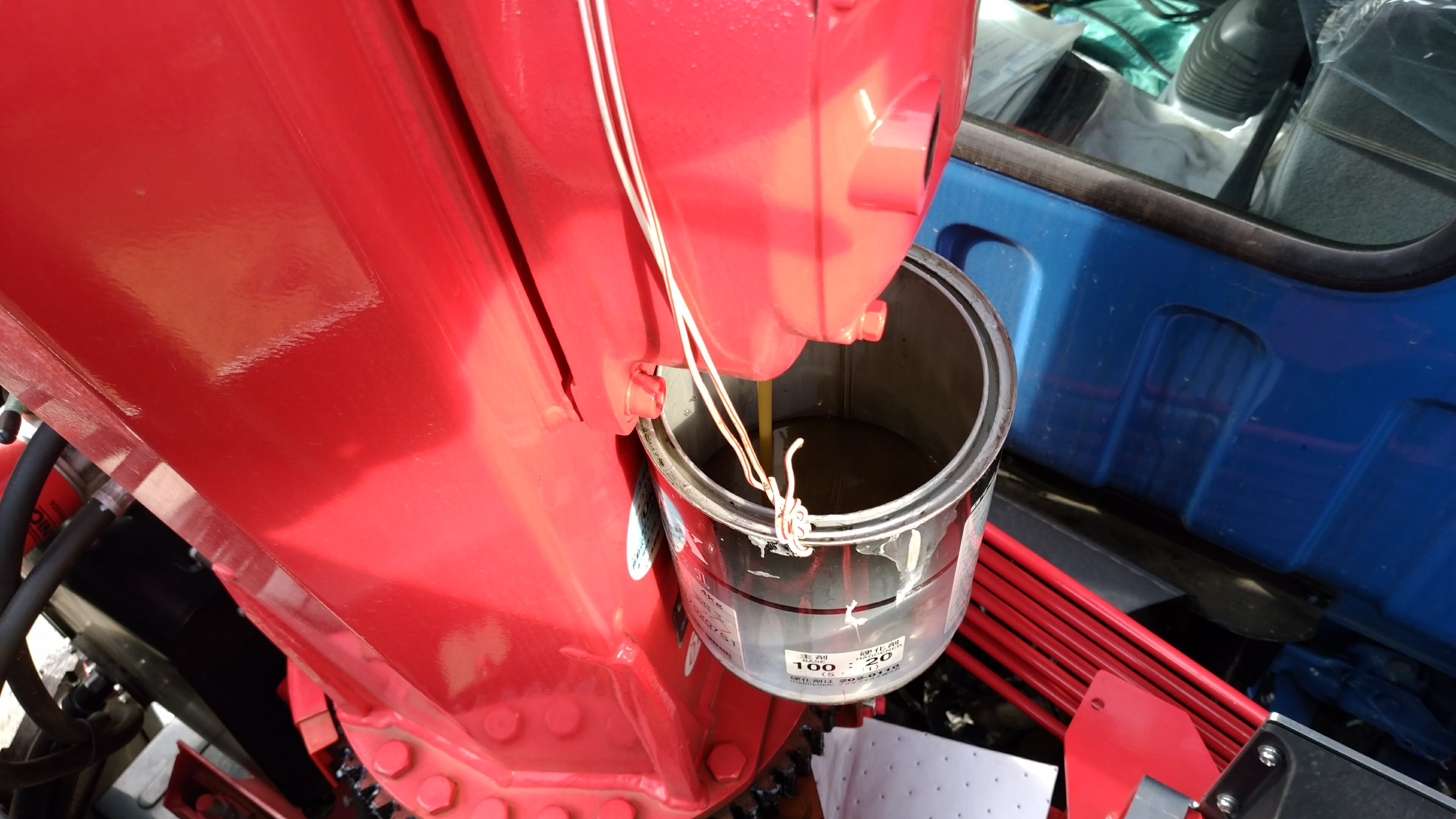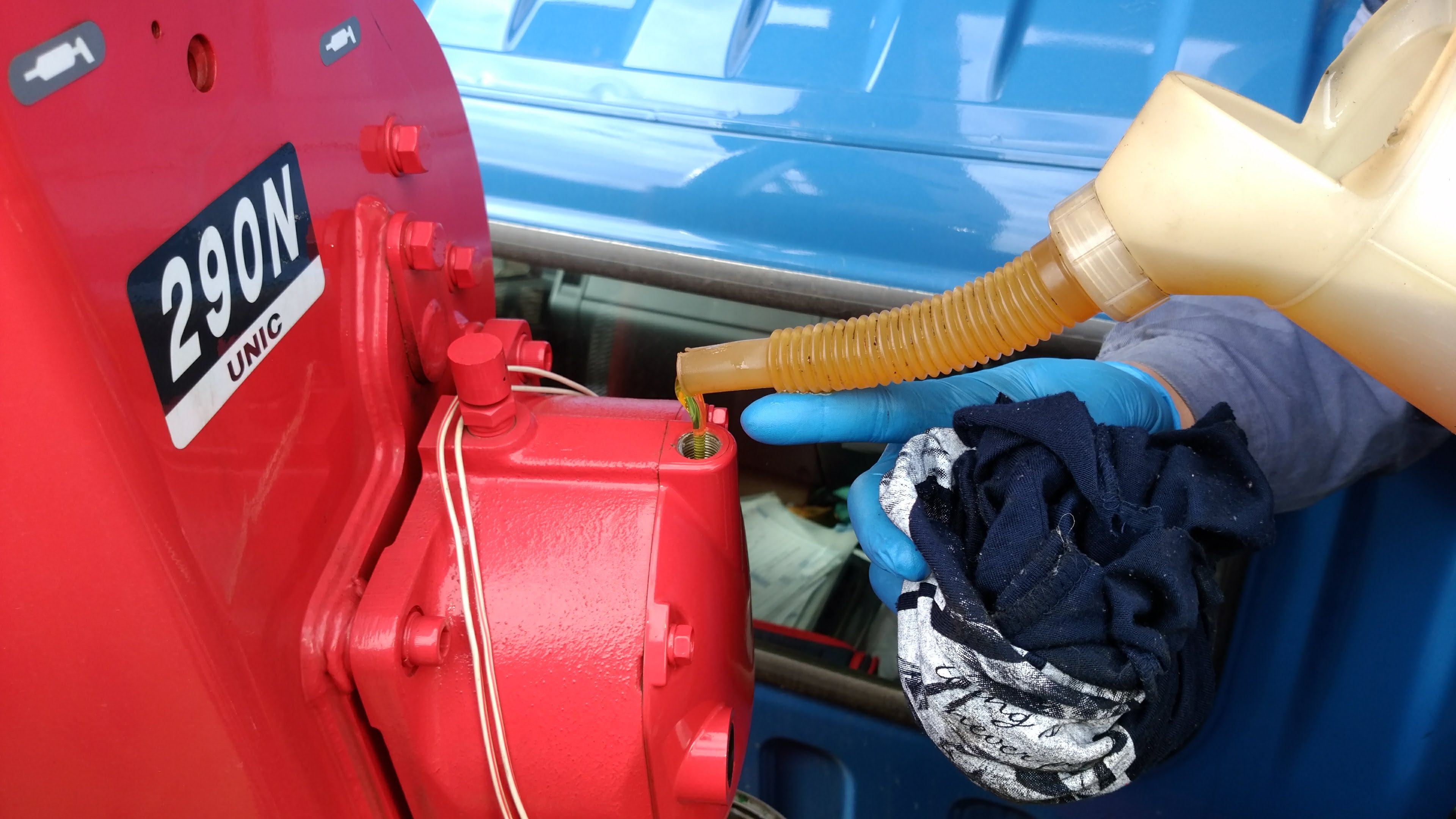 新しいオイルを概ね1.2L給油します。色の違いが微妙な感じですが若干透明感があります。