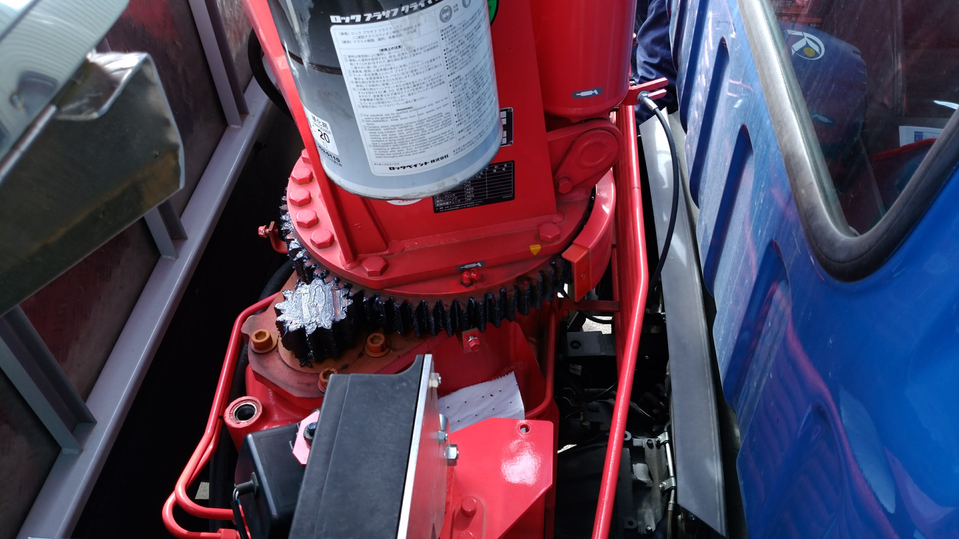 旋回装置の旋回ギヤ、ベアリング、ターンテーブル等の作動状態、異音、油漏れの点検。